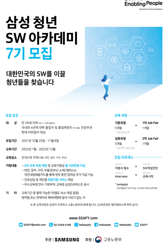 삼성과 고용노동부가 함께하는 sw 역량 향상 교육 프로그램입니다지원자격은 나이와 대학졸업예정자이며 저는 주변대학교 동기들도 많이 신청하고