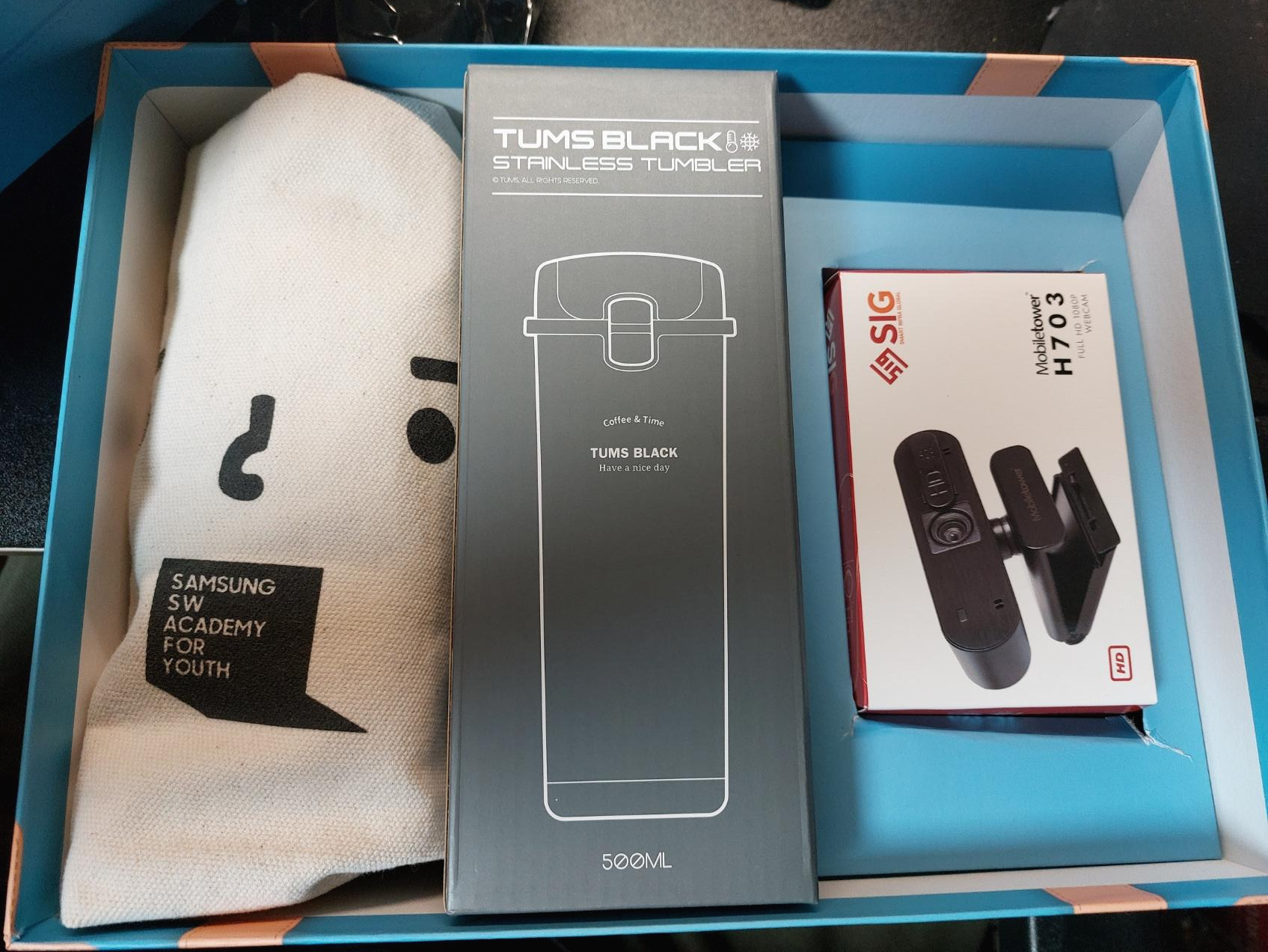 텀블러 에코백 카메라 후드티 반팔티로 구성되어 있으며 카메라랑 텀블러 좋은 걸로 주셔서 만족하고 사용 중입니다.